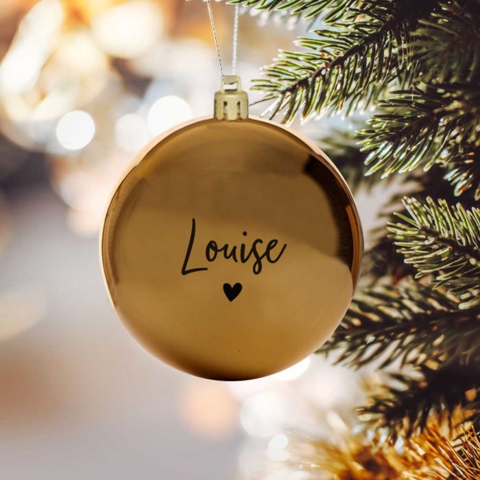 Cette année, et comme chaque année, chers lutins et fées de Noël, votre sapin sera encore plus beau et original que l’année passée. Tout simplement parce que nous avons chaque année de nouvelles idées de déco à vous proposer, toutes plus belles et plus originales les unes que les autres. Et quand nous disons « originales », nous pensons par exemple à notre boule de Noël personnalisée avec un cœur, que vous pouvez personnaliser avec votre propre texte. Le tout avec une ficelle pour le suspendre (très high-tech, donc…) et aussi dans la couleur de votre choix.