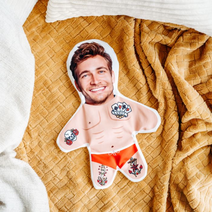 Il est sympa, non ? Notre coussin Mini Moi Édition tatouage avec personnalisation visage (ou photo du visage). Si votre chéri est fan de tatouages, voici de quoi le représenter presque en chair et en os (et en miniature !)… Et s’il n’a pas les mêmes biscoteaux en vrai, ce n’est pas grave, il s’en sentira d’autant plus flatté !
